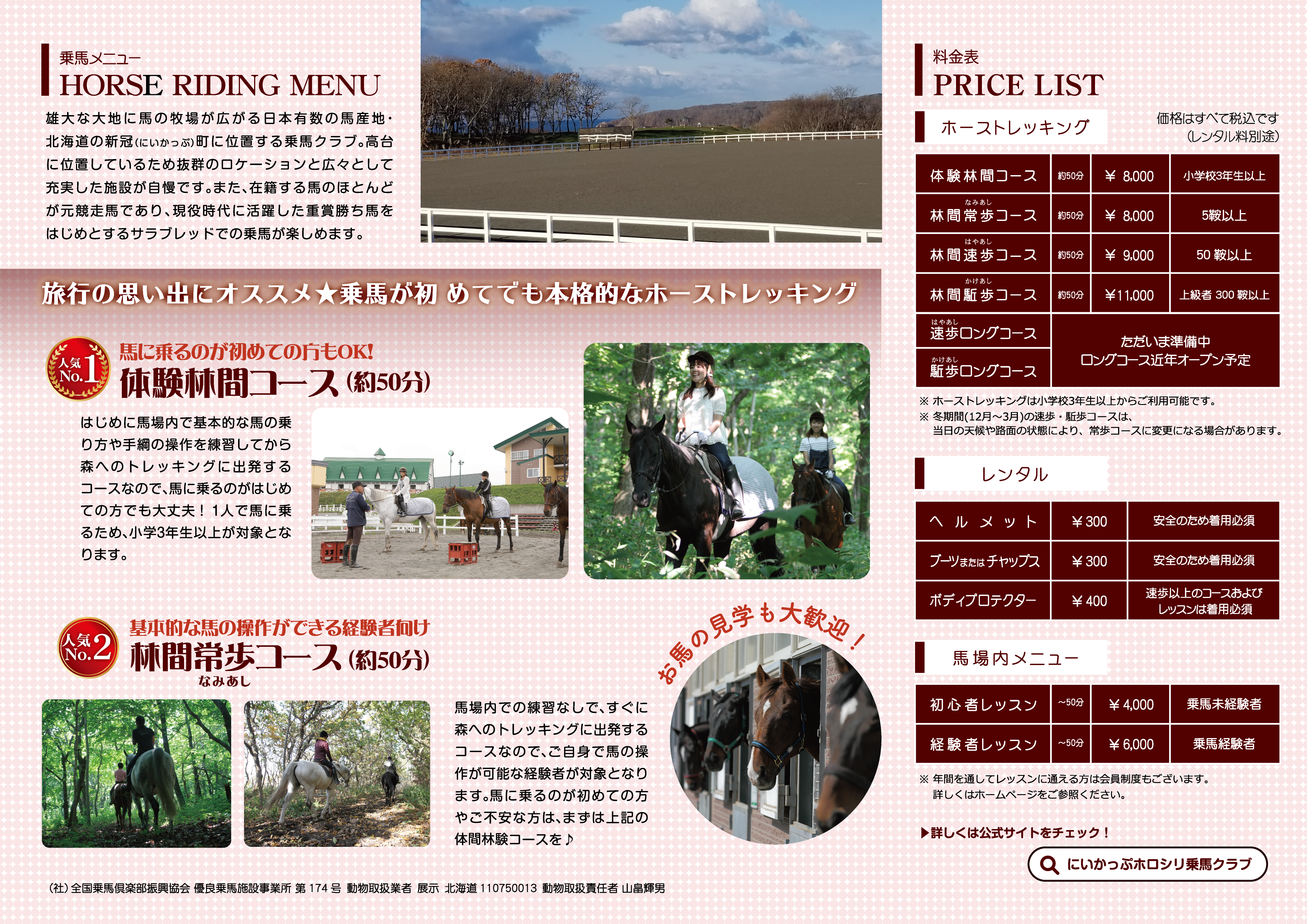 料金表 ホロシリ乗馬クラブ
